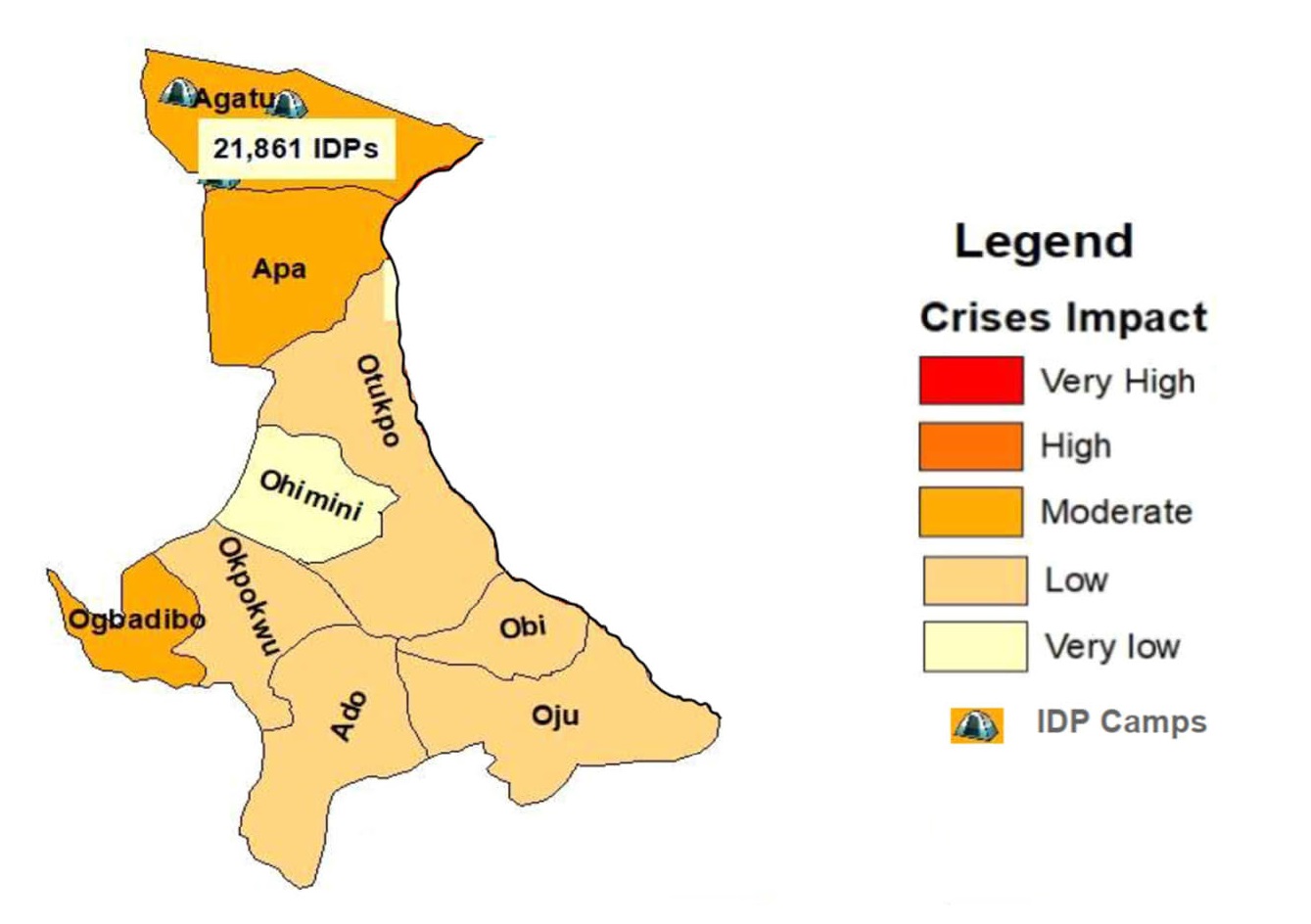 • Mass displacement into Oju town and neighbouring LGAs.